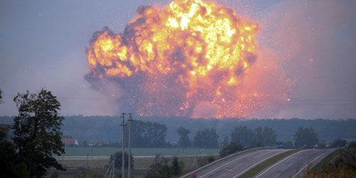 وقع انفجار قوي بمخزن للذخائر في شمال أوكرانيا أمس الثلاثاء. وذكرت شبكة قناة روسيا اليوم أن القيادة العامة الأوكرانية قالت إن الانفجارات وقعت في مخزن ببلدة اشنيا. ولم يعرف بعد حجم الانفجار أو نطاق المنطقة المتضررة.
