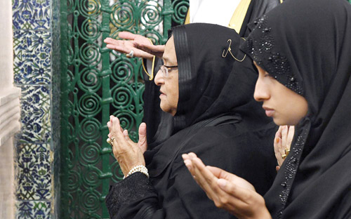 زارت دولة رئيسة الوزراء وزيرة الدفاع بجمهورية بنجلاديش الشعبية حسينة واجد، أمس، المسجد النبوي الشريف، حيث أدت الصلاة فيه, وتشرفت بالسلام على الرسول المصطفى -صلى الله عليه وسلم-, وصاحبيه -رضوان الله عليهما-.