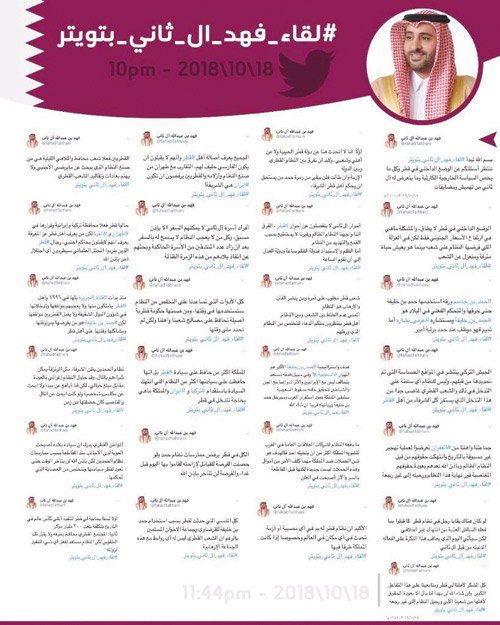 * يا الأمير الحين في قطر مسويين اجتماعاً للقبائل لاختيار أمير جديد غير تميم وآل مسند يبون الحكم لإنقاذ تميم من ورطه #خشقجي ولأنه سبب مقاطعة الخليج لقطر ولأنه تسبب في دمار الاقتصاد وسبب مشاكل كثيرة في الداخل والخارج.. ما هي استنتاجاتكم و#شكرا؟