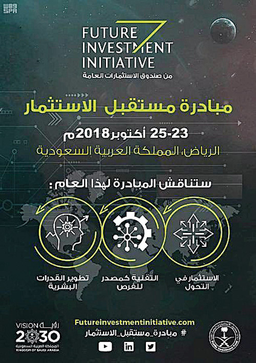 تحت رعاية خادم الحرمين الشريفين الملك سلمان بن عبدالعزيز آل سعود «حفظه الله»، وبرئاسة صاحب السمو الملكي الأمير محمد بن سلمان بن عبدالعزيز، ولي العهد نائب رئيس مجلس الوزراء، رئيس مجلس الشؤون الاقتصادية والتنمية ورئيس مجلس إدارة صندوق الاستثمارات العامة، ينظم صندوق الاستثمارات العامة مبادرة مستقبل الاستثمار للعام 2018م، والتي ستنطلق اليوم وحتى 25 أكتوبر الجاري في مدينة الرياض. وتسعى المبادرة في هذا العام إلى مواصلة استكشاف الاتجاهات والفرص التي ستساهم في تحقيق عائدات وآثار إيجابية مستدامة وبناء شبكة تضم أهم الأطراف المؤثرين في الساحة العالمية، إضافة إلى تسليط الضوء على القطاعات الناشئة التي ستساهم في رسم مستقبل الاقتصاد العالمي خلال العقود المقبلة.