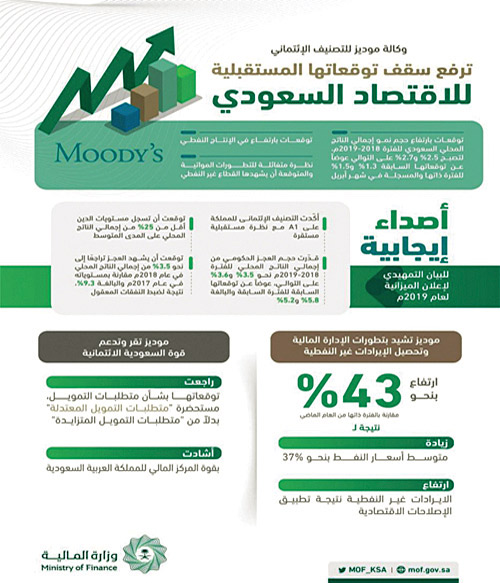 وقال الاقتصادي والمصرفي فضل البوعينين إنه على الرغم من الإبقاء على التصنيف الائتماني للاقتصاد السعودي عند A1 مع نظرة مستقبلية مستقرة؛ وهو تصنيف متقدم جداً وينم عن متانة الاقتصاد وجدارته الائتمانية؛ إلا أن توقعات وكالة التصنيف الائتماني «موديز» تجاوزت في مجملها توقعات البيان التمهيدي لإعلان الميزانية لعام 2019م، وتوقعاتها السابقة، وهذا أمر محفز ولا شك؛ ويؤكد نجاعة الإصلاحات؛ خاصة ما يتعلق برفع توقعات نمو الناتج المحلي السعودي إلى 2.7 % للعام الحالي؛ وعلى الرغم من إشارة موديز لارتفاع مساهمة القطاع النفطي في الناتج الإجمالي ما يزيد من قوة الاقتصاد إلا أن تأكيد الوكالة على نمو القطاع غير النفط يؤكد أن الإصلاحات الاقتصادية بدأت تؤتي بعض ثمارها؛ وأن خطط تنويع الاقتصاد السعودي ستسهم في رفع النمو الاقتصادي المتوسط وطويل الأجل، وهو ما أكدته موديز، إضافة إلى إشادتها بالإيرادات السعودية خلال النصف الأول من 2018م التي شهدت ارتفاعا بنحو 43 % مقارنة بالفترة ذاتها من العام الماضي.