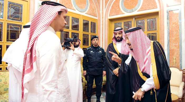 استقبل خادم الحرمين الشريفين الملك سلمان بن عبدالعزيز آل سعود -حفظه الله- في قصر اليمامة بالرياض أمس، سهل بن أحمد خاشقجي، وصلاح بن جمال خاشقجي.. وذلك بحضور صاحب السمو الملكي الأمير محمد بن سلمان بن عبدالعزيز ولي العهد نائب رئيس مجلس الوزراء وزير الدفاع.