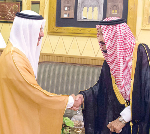 وقد رحب خادم الحرمين الشريفين بأصحاب الجلالة والسمو والدولة والمعالي في بلدهم المملكة، وأقام خادم الحرمين الشريفين -رعاه الله- بهذه المناسبة، مأدبة غداء تكريماً لهم.