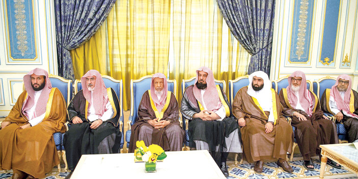 وفي بداية الاستقبال أنصت الجميع لتلاوة آيات من القرآن الكريم، ثم تشرف الحضور بالسلام على خادم الحرمين الشريفين -أيده الله-.