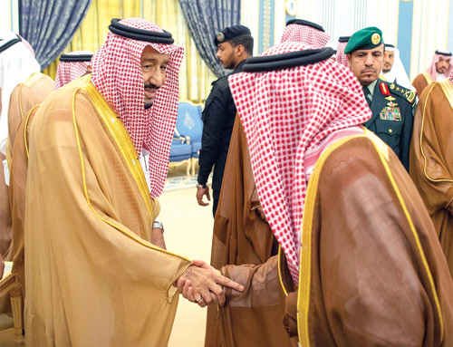 استقبل خادم الحرمين الشريفين الملك سلمان بن عبدالعزيز آل سعود -حفظه الله- في قصر اليمامة بالرياض أمس أصحاب السمو الأمراء، وسماحة المفتي العام للمملكة، وأصحاب الفضيلة العلماء والمعالي، وجمعًا من المواطنين الذين قدموا للسلام عليه -رعاه الله-.