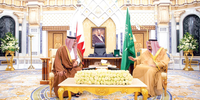 كما استقبل خادم الحرمين الشريفين الملك سلمان بن عبد العزيز آل سعود -حفظه الله- في مكتبه بقصر اليمامة في الرياض أمس صاحب السمو الملكي الأمير سلمان بن حمد آل خليفة ولي العهد نائب القاعد الأعلى النائب الأول لرئيس مجلس الوزراء بمملكة البحرين. وتم خلال الاستقبال، استعراض العلاقات الأخوية بين البلدين الشقيقين، وآخر التطورات الإقليمية والدولية. حضر الاستقبال، صاحب السمو الملكي الأمير فيصل بن بندر بن عبد العزيز أمير منطقة الرياض، وصاحب السمو الملكي الأمير الدكتور منصور بن متعب بن عبد العزيز وزير الدولة عضو مجلس الوزراء مستشار خادم الحرمين الشريفين، ومعالي وزير الدولة عضو مجلس الوزراء الدكتور مساعد بن محمد العيبان، ومعالي وزير المالية الأستاذ محمد بن عبدالله الجدعان، ومعالي وزير الإعلام الدكتور عواد بن صالح العواد الوزير المرافق، وسفير خادم الحرمين الشريفين لدى مملكة البحرين الدكتور عبد الله بن عبدالملك آل الشيخ. كما حضره من الجانب البحريني، سمو الشيخ عيسى بن سلمان آل خليفة، ومعالي الشيخ أحمد بن محمد آل خليفة وزير المالية، ومحافظ مصرف البحرين المركزي رشيد بن محمد المعراج، ورئيس غرفة تجارة وصناعة البحرين سمير بن عبد الله ناس، ومعالي وزير النفط الشيخ محمد بن خليفة آل خليفة، ووزير المواصلات والاتصالات كمال بن أحمد محمد، ومعالي الشيخ حمود بن عبد الله آل خليفة سفير مملكة البحرين لدى المملكة.