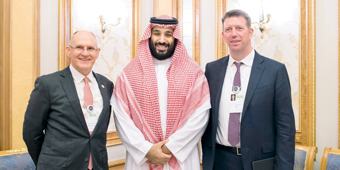 كما استقبل سمو ولي العهد أمس رئيس العمليات الدولية في شركة «سكس فلاقز» ديفيد ماكلابيس، بحضور معالي المستشار بالديوان الملكي الدكتور فهد تونسي، ومعالي المشرف على صندوق الاستثمارات العامة الأستاذ ياسر الرميان، والسيد مايكل ريننجر الرئيس التنفيذي لمشروع القدية. وجرى خلال اللقاء، استعراض فرص التعاون في الجانب الترفيهي، والتأكيد على أن ترتقي نتائج التعاون في مشروع القدية إلى الطموحات المأمولة. كما التقى سموه أمس الرئيس التنفيذي لشركة «لوسيد موتورز» سام ونق، بحضور معالي المشرف على صندوق الاستثمارات العامة الأستاذ ياسر الرميان. وجرى خلال اللقاء، بحث فرص تطوير الشركة، والانتقال بها إلى مراحل صناعية متطورة.
