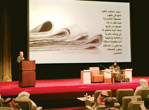وأبان رئيس تحرير صحيفة الأهرام المصرية، في محاضرته التي نظمها مركز الملك فيصل للبحوث، أن كبريات الصحف في أميركا وأوروبا واليابان تعتمد على الفصل بين النسخة الورقية والنسخة الإلكترونية، مع اتباع نظام البوابات الإعلامية الشاملة التي تقدم كافة الخدمات الممكنة للقراء وتجدد محتواها على مدار الساعة وتسبق النسخ المطبوعة في نشر الأخبار، ومن هذه الصحف: واشنطن بوست، ونيويورك تايمز، والفايننشيال تايمز، وأيضاً شيكاغو تريبيون التي تمتلك الشركةُ المالكة لها محطاتٍ تلفزيونية وإذاعية ومجلات ومواقع إلكترونية وحصصاً في شركات ترفيه واتصال بالشبكة الإلكترونية.