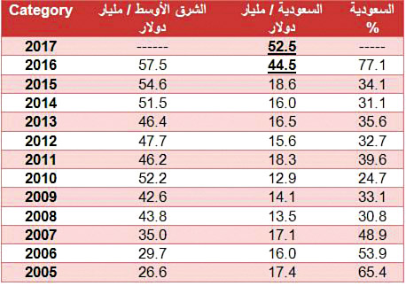 السعودية تسهم بأعلى من ثلثي الإيرادات بالشرق الأوسط