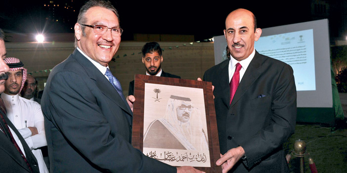 وفي نهاية الحفل قدم الملحق الثقافي هدية تذكارية للسفير نقلي.
