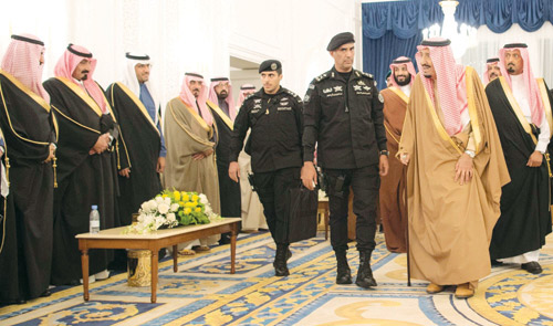 وقد وصل في معية خادم الحرمين الشريفين كل من : صاحب السمو الأمير خالد بن فهد بن خالد، وصاحب السمو الملكي الأمير منصور بن سعود بن عبد العزيز، وصاحب السمو الملكي الأمير سعود بن سعد بن عبد العزيز، وصاحب السمو الملكي الأمير سعود بن مساعد بن عبد العزيز، وصاحب السمو الملكي الأمير طلال بن سعود بن عبد العزيز، وصاحب السمو الأمير خالد بن سعد بن فهد، وصاحب السمو الملكي الأمير محمد بن مشاري بن عبد العزيز، وصاحب السمو الملكي الأمير خالد بن بندر بن عبد العزيز مستشار خادم الحرمين الشريفين، وصاحب السمو الملكي الأمير الدكتور منصور بن متعب بن عبد العزيز وزير الدولة عضو مجلس الوزراء مستشار خادم الحرمين الشريفين، وصاحب السمو الملكي الأمير متعب بن عبد الله بن عبد العزيز، وصاحب السمو الأمير فهد بن عبد الله بن عبد العزيز بن مساعد، وصاحب السمو الملكي الأمير عبد العزيز بن محمد بن عبد العزيز، وصاحب السمو الملكي الأمير سطام بن سعود بن عبد العزيز، وصاحب السمو الأمير فيصل بن سعود بن محمد، وصاحب السمو الملكي الأمير الدكتور حسام بن سعود بن عبد العزيز أمير منطقة الباحة، وصاحب السمو الملكي الأمير الدكتور عبد العزيز بن سطام بن عبد العزيز مستشار خادم الحرمين الشريفين، وصاحب السمو الملكي الأمير تركي بن عبد الرحمن بن عبد العزيز، وصاحب السمو الملكي الأمير فيصل بن عبد المجيد بن عبد العزيز، وصاحب السمو الملكي الأمير عبد العزيز بن هذلول بن عبد العزيز، وصاحب السمو الملكي الأمير نايف بن ممدوح بن عبد العزيز، وصاحب السمو الملكي الأمير فيصل بن خالد بن سلطان بن عبد العزيز أمير منطقة الحدود الشمالية، وصاحب السمو الملكي الأمير سعود بن مشعل بن عبد العزيز، وصاحب السمو الملكي الأمير نايف بن سلطان بن عبد العزيز، وصاحب السمو الملكي الأمير محمد بن عبد الرحمن بن عبد العزيز نائب أمير منطقة الرياض، وصاحب السمو الملكي الأمير فيصل بن نواف بن عبد العزيز، وصاحب السمو الملكي الأمير أحمد بن فهد بن سلمان بن عبد العزيز نائب أمير المنطقة الشرقية، وصاحب السمو الملكي الأمير نواف بن نايف بن عبد العزيز، وصاحب السمو الملكي الأمير سعود بن سلمان بن عبد العزيز، وصاحب السمو الملكي الأمير عبد الله بن خالد بن سلطان بن عبد العزيز المستشار في الديوان الملكي، وصاحب السمو الملكي الأمير فيصل بن عبد الرحمن بن عبد العزيز، وصاحب السمو الملكي الأمير نيف بن سلمان بن عبد العزيز، وصاحب السمو الملكي الأمير عبد المجيد بن عبد الإله بن عبد العزيز، وصاحب السمو الملكي الأمير راكان بن سلمان بن عبد العزيز.