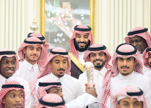 استقبل صاحب السمو الملكي الأمير محمد بن سلمان بن عبدالعزيز ولي العهد نائب رئيس مجلس الوزراء وزير الدفاع في قصر اليمامة أمس رئيس وأعضاء الاتحاد السعودي لكرة القدم، ولاعبي المنتخب السعودي للشباب لكرة القدم بمناسبة تحقيقهم بطولة كأس آسيا للشباب، والتأهل لنهائيات كأس العالم 2019 في بولندا. وهنأ سمو ولي العهد مسؤولي ولاعبي المنتخب السعودي للشباب لكرة القدم على ظهورهم المشرف وتحقيق كأس آسيا للشباب، والتأهل لكأس العالم، مؤكداً سموه أهمية الاستمرار في بذل المزيد من الجهد لرفع اسم المملكة عالياً خلال مشاركاتهم القادمة في المحافل الدولية كافة. وفي نهاية الاستقبال كرم سمو ولي العهد رئيس وأعضاء الاتحاد السعودي لكرة القدم، والأجهزة الإدارية والفنية والطبية ولاعبي المنتخب السعودي للشباب لكرة القدم بمناسبة هذا الإنجاز. حضر الاستقبال صاحب السمو الملكي الأمير عبدالعزيز بن تركي الفيصل نائب رئيس مجلس إدارة الهيئة العامة للرياضة، ووكلاء رئيس الهيئة العامة للرياضة.