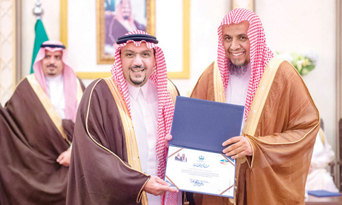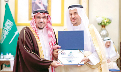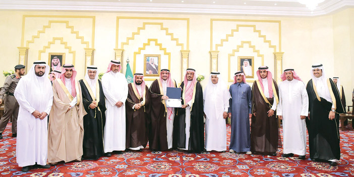 جاء ذلك خلال حفل تكريم سموه للجهات الحكومية والداعمين واللجان العاملة وشركاء النجاح في حفل إمارة وأهالي منطقة القصيم لاستقبال خادم الحرمين الشريفين الملك سلمان بن عبدالعزيز وسمو ولي عهده الأمين -حفظهما الله-, مساء أمس الأول, بقصر التوحيد في مدينة بريدة, بحضور معالي مدير جامعة القصيم الدكتور عبدالرحمن الداود, ووكيل إمارة المنطقة الدكتور عبدالرحمن الوزان, ووكيل إمارة المنطقة للشؤون الأمنية إبراهيم الهذلي, ومدير شرطة المنطقة اللواء بدر الطالب, ومدراء الجهات الحكومية والأمنية وأعضاء اللجان المكلفة».