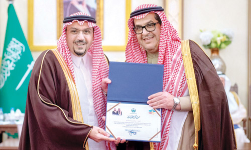 تتويجاً للجهد والتميز الذي قدمته صحيفة الجزيرة في تغطياتها الإعلامية بمناسبة الزيارة الملكية واستقبال خادم الحرمين الشريفين الملك سلمان بن عبدالعزيز وسمو ولي عهد الأمين، فقد كرم صاحب السمو الملكي الأمير الدكتور فيصل بن مشعل بن سعود بن عبدالعزيز، أمير منطقة القصيم صحيفة «الجزيرة»، حيث تسلم مدير مكتب صحيفة الجزيرة الإقليمي بمنطقة القصيم الزميل فهد بن عبدالله العايد شهادة الشكر والتقدير من سموه.