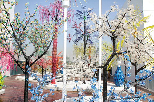 وتضم غرف الفنانين سلسلة من أربعة معارض منفردة لفنانين بارزين من الشرق الأوسط وآسيا: مها ملوح، لاله روخ، تشيهارو شيوتا، ومنيرة الصلح. كما يتم عرض مجموعة مختارة من التركيبات والمجسّمات كبيرة الحجم، والعديد من التكليفات الجديدة في شرفة سطح المركز ومنتشرة في أرجاء الحدائق التي صممتها مهندسة المناظر الطبيعية الحدائق والمسطحات أنوك فيجل، وتركّز صالة العرض 9 على أفلام وأعمال الفيديو للفنانة جمانة منّاع.