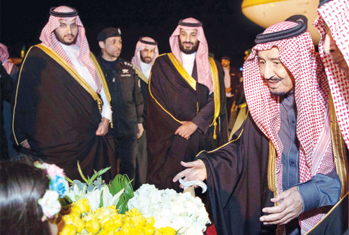 وصل بحفظ الله ورعايته خادم الحرمين الشريفين الملك سلمان بن عبدالعزيز آل سعود - حفظه الله - مساء أمس إلى منطقة الجوف. وفور وصول خادم الحرمين الشريفين، مطار الجوف، كان في استقباله - رعاه الله - صاحب السمو الملكي الأمير محمد بن سلمان بن عبدالعزيز ولي العهد نائب رئيس مجلس الوزراء وزير الدفاع. كما كان في استقبال الملك المفدى، صاحب السمو الملكي الأمير بدر بن سلطان بن عبدالعزيز أمير منطقة الجوف، وصاحب السمو الملكي الأمير عبدالعزيز بن فهد بن تركي بن عبدالعزيز نائب أمير منطقة الجوف. وكان في استقبال خادم الحرمين الشريفين، صاحب السمو الملكي الأمير تركي بن محمد بن فهد بن عبدالعزيز المستشار في الديوان الملكي، وصاحب السمو الملكي الأمير عبدالعزيز بن سعود بن نايف بن عبدالعزيز وزير الداخلية، وصاحب السمو الأمير بدر بن عبدالله بن محمد بن فرحان وزير الثقافة، وصاحب السمو الملكي الأمير عبدالله بن بندر بن عبدالعزيز نائب أمير منطقة مكة المكرمة، وأصحاب الفضيلة وكبار المسؤولين وقادة القطاعات العسكرية في منطقة الجوف، وعدد من أهالي وأعيان المنطقة.