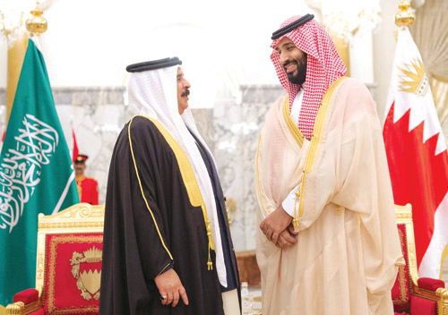 وكان قد وصل صاحب السمو الملكي الأمير محمد بن سلمان بن عبدالعزيز ولي العهد نائب رئيس مجلس الوزراء وزير الدفاع مساء أمس إلى مملكة البحرين. وكان في استقبال سمو ولي العهد في مطار قاعدة الصخير الجوية جلالة الملك حمد بن عيسى آل خليفة ملك مملكة البحرين. كما كان في استقبال سمو ولي العهد صاحب السمو الملكي الأمير خليفة بن سلمان آل خليفة رئيس مجلس الوزراء في مملكة البحرين، وصاحب السمو الملكي الأمير سلمان بن حمد آل خليفة ولي العهد نائب القائد الأعلى النائب الأول لرئيس مجلس الوزراء بمملكة البحرين.