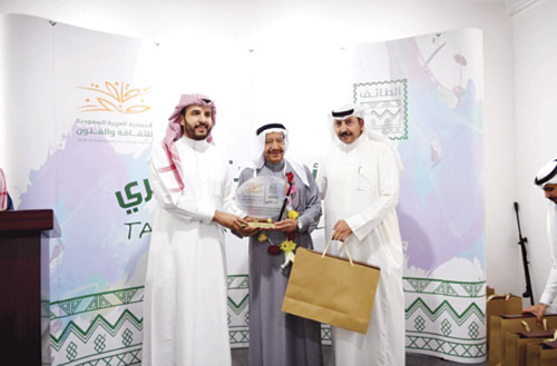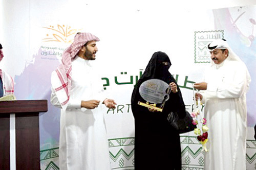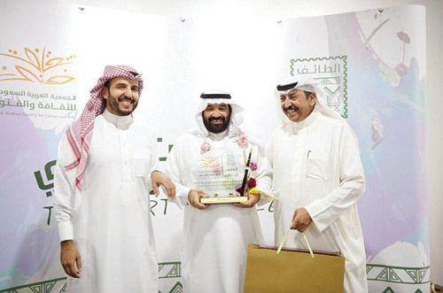 وقام الحضور بعد قص الشريط بجولة، شملت الأعمال المشاركة التي برز فيها التنوع الذي كان له دور في خلق التوازن بين أعمال مواهب ومبتدئين، وأعمال أصحاب خبرة وتجربة.. واستمع الضيوف والحضور خلال الجولة إلى شرح من الفنانين المشاركين لما يقارب 80 عملاً تشكيليًّا، تنوعت بين الرسم والنحت من مختلف المدارس التشكيلية، أسهم فيه فنانو وفنانات الطائف بالنصيب الأكبر مع ما طُعم به من مشاركات من فنانين من خارج الطائف على مستوى المملكة. كما تضمن الحفل تكريم ستة من رموز الفنون التشكيلية بالمملكة، هم: الفنان الدكتور محمد الرصيص والفنان علي ناجع والفنان محمد المنيف والفنان حماد الجعيد والإعلامي خير الله زربان والفنانة مناهل الوقداني؛ فلكل منهم بصمته وحضوره. وقام الدكتور عمر السيف رئيس مجلس إدارة جمعية الثقافة والفنون، يشاركه الفنان الأستاذ فيصل الخديدي مدير فرع الجمعية في الطائف صاحب ومشرف الفعالية، بتسليم دروع التكريم.