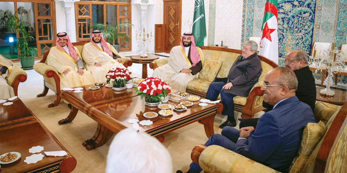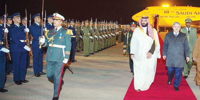 وقد أقيمت مراسم استقبال رسمية حيث عزف السلامان السعودي والجزائري. وعقب استراحة قصيرة في المطار، صحب الوزير الأول الجزائري، سمو ولي العهد في موكب رسمي إلى مقر إقامته. ويضم الوفد الرسمي لسمو ولي العهد، صاحب السمو الملكي الأمير تركي بن محمد بن فهد بن عبدالعزيز المستشار بالديوان الملكي، وصاحب السمو الملكي الأمير عبدالعزيز بن سعود بن نايف بن عبدالعزيز وزير الداخلية، ومعالي وزير الدولة عضو مجلس الوزراء الدكتور مساعد بن محمد العيبان، ومعالي وزير التجارة والاستثمار الدكتور ماجد القصبي، ومعالي وزير الخارجية الأستاذ عادل الجبير، ومعالي وزير الطاقة والصناعة والثروة المعدنية المهندس خالد الفالح، ومعالي وزير الإعلام الدكتور عواد العواد، ومعالي رئيس الاستخبارات العامة الأستاذ خالد الحميدان.