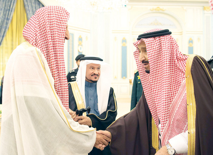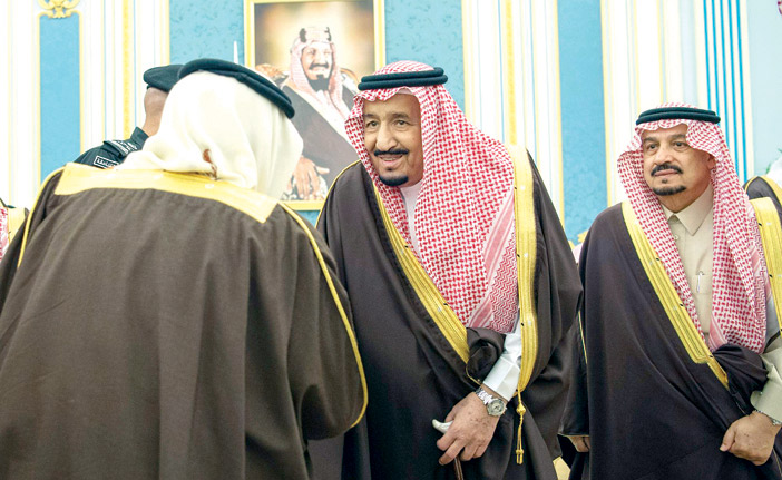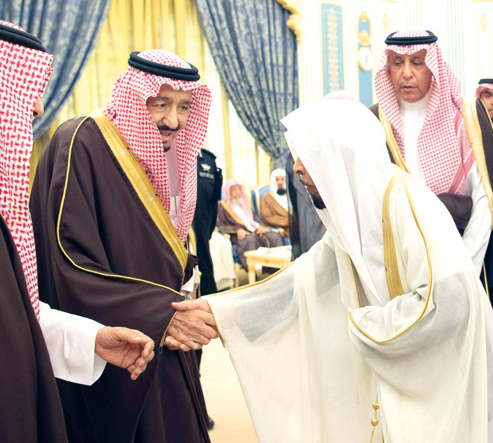 استقبل خادم الحرمين الشريفين الملك سلمان بن عبد العزيز آل سعود -حفظه الله- في قصر اليمامة في الرياض أمس، أصحاب السمو الأمراء، وسماحة مفتي عام المملكة، وأصحاب الفضيلة العلماء والمعالي، وجمعاً من المواطنين الذين قدموا للسلام عليه -رعاه الله-.