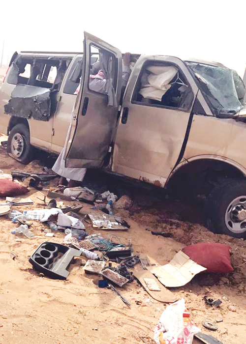 تعرَّضت سيارة من نوع (فان)، تقلُّ معلمات متجهات من مدينة المجمعة إلى بلدة السحيمي شمال المحافظة للعمل في مجمعها التعليمي، صباح أمس الأربعاء لحادث مروري مروع، نتج منه وفاة سائق الفان في الحال، وإصابة المعلمات البالغ عددهن أربع معلمات، إحداهن أُصيبت بإصابات بالغة، والأخرى بكسور متعددة، واثنتان حالتاهما مستقرتان.