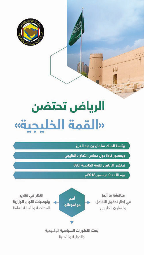 ويحل قادة دول المجلس ضيوفا على المملكة العربية السعودية بالعاصمة الرياض بعد غدٍ الأحد ليكملوا مسيرة 39 عاماً من العمل المشترك.