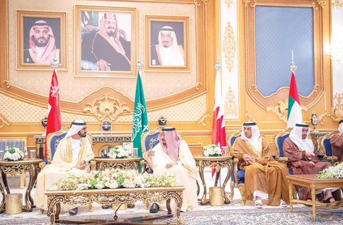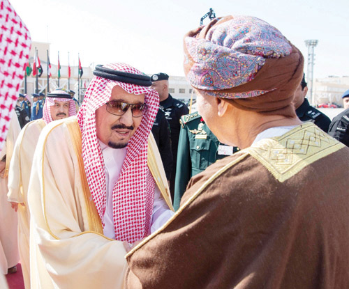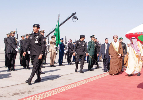 بدأ أصحاب الجلالة والسمو قادة ورؤساء وفود دول مجلس التعاون لدول الخليج العربية التوافد إلى الرياض أمس لحضور اجتماع الدورة التاسعة والثلاثين للمجلس الأعلى لمجلس التعاون. فقد وصل صاحب السمو السيد فهد بن محمود آل سعيد نائب رئيس الوزراء لشؤون مجلس الوزراء بسلطنة عُمان. وكان في استقباله بمطار قاعدة الملك سلمان الجوية، أخوه خادم الحرمين الشريفين الملك سلمان بن عبدالعزيز آل سعود الذي رحب به وبمرافقيه في المملكة العربية السعودية. كما كان في استقباله، صاحب السمو الملكي الأمير فيصل بن بندر بن عبدالعزيز أمير منطقة الرياض، ومعالي وزير الدولة عضو مجلس الوزراء الدكتور عصام بن سعد بن سعيد الوزير المرافق، ومعالي الأمين العام لمجلس التعاون لدول الخليج العربية الدكتور عبداللطيف بن راشد الزياني، ومعالي رئيس المراسم الملكية الأستاذ خالد بن صالح العباد، وسفير خادم الحرمين الشريفين لدى سلطنة عمان عيد بن محمد الثقفي، وسفير سلطنة عُمان لدى المملكة الدكتور أحمد بن هلال البوسعيدي. بعد ذلك صافح نائب رئيس الوزراء لشؤون مجلس الوزراء بسلطنة عُمان مستقبليه، صاحب السمو الملكي الأمير سعود بن عبدالمحسن بن عبدالعزيز المستشار الخاص لخادم الحرمين الشريفين، وصاحب السمو الملكي الأمير خالد بن بندر بن عبدالعزيز مستشار خادم الحرمين الشريفين، وصاحب السمو الملكي الأمير تركي بن محمد بن فهد بن عبدالعزيز المستشار في الديوان الملكي، وصاحب السمو الملكي الأمير عبدالعزيز بن سعود بن نايف بن عبدالعزيز وزير الداخلية، وصاحب السمو الأمير خالد بن عبدالعزيز بن عياف وزير الحرس الوطني، وأصحاب المعالي الوزراء وقادة القطاعات العسكرية. كما صافح خادم الحرمين الشريفين الوفد الرسمي المرافق لنائب رئيس الوزراء لشؤون مجلس الوزراء بسلطنة عُمان. وبعد استراحة قصيرة في صالة التشريفات، غادر صاحب السمو السيد فهد بن محمود آل سعيد في موكب رسمي إلى قصر الدرعية. ويضم الوفد الرسمي المرافق لنائب رئيس الوزراء لشؤون مجلس الوزراء بسلطنة عُمان، معالي الوزير المسؤول عن الشؤون الخارجية يوسف بن علوي بن عبدالله، ومعالي وزير التجارة والصناعة الدكتور علي بن مسعود السنيدي، ومعالي وزير الشؤون القانونية الدكتور عبدالله بن محمد السعيدي، وصاحب السمو السيد كامل بن فهد آل سعيد مساعد الأمين العام لمكتب نائب رئيس الوزراء لشؤون مجلس الوزراء، وسفير سلطنة عمان لدى امملكة الدكتور أحمد بن هلال البوسعيدي.