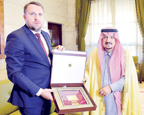 استقبل صاحب السمو الملكي الأمير فيصل بن بندر بن عبدالعزيز أمير منطقة الرياض في مكتبه بقصر الحكم أمس, عمدة مدينة سراييفو عبدالله اسكاكا والوفد المرافق له الذي يزور المملكة حالياً. ورحب سموه في بداية الاستقبال بعمدة مدينة سراييفو والوفد المرافق, متمنياً لهم طيب الإقامة في المملكة، كما جرى خلال الاستقبال تبادل الأحاديث الودية, وبحث عدد من الموضوعات ذات الاهتمام المشترك.