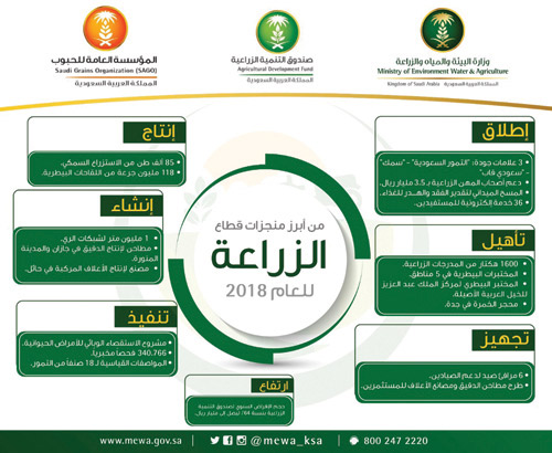 وأوضح وزير البيئة والمياة والزراعة ان منجزات منظومة البيئة والمياه والزراعة جاءت خلال العام الجاري 2018، لتؤكد تكامل قطاعاتها المختلفة في تحقيق مبادرات التحول الوطني ورؤية المملكة 2030، من خلال رفع القدرة التشغيلية للمشاريع، وزيادة كفاءة الإنفاق الحكومي، واستدامة الموارد الطبيعية.