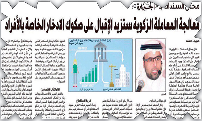 وأردف محلل السندات بـ»الجزيرة»: من جهة أخرى أكدت مذكرة بحثية صادرة من «بلومبرج إنتلجنس»، المعروفة بمصادرها الوثيقة مع العاملين بالقطاع المصرفي السعودي، أنه من المرجح تغيير آلية طريقة احتساب الوعاء الزكوي للبنوك لتصبح 10 في المائة على الأرباح الصافية وذلك بعد استثناء عوائد الاستثمار بأدوات الدين الحكومية. وأشار المصدر نفسه، الذي يحظى بمتابعة المستثمرين الأجانب بالأسهم السعودية، إلى أنه بحسب فهمهم فقد تم استقطاع الزكاة من أدوات الدين الحكومية إبان مرحلة التسوية. وقال محمد الخنيفر: سبق أن ذكرنا في إحدى التحليلات التي نشرتها صحيفة الجزيرة بأنه من ضمن الأمور التي ستشجع المستثمرين على الإقبال على الصكوك هو وجود تشريعات تعالج مسألة الزكاة على أرباح هذه السندات الإسلامية. وهذه المسألة تحظى بأهمية كبرى لدى المستثمرين؛ لأنها تؤثر على نسبة ما يتحصلونه من الأرباح الدورية للصكوك (خصوصاً أن هناك توجهاً من الحكومة لطرح صكوك الادخار على الأفراد). وقال الخنيفر: وضعنا حينها علامات استفهام حول مسألة التأخر في معالجة هذه القضية الحيوية (أي الزكاة وضريبة الاستقطاع) التي في العادة يتم حسم أمرها في المراحل الأولى قبل بداية تطور أسواق الدين لأي دولة في العالم وأن هناك بعض الدول من تقدم إعفاءات ضريبية من أجل تشجيع المستثمرين على تمويل العجز.