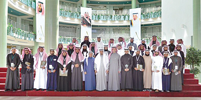 بحضور مدير الجامعة الدكتور خالد المقرن والوكلاء وعمداء الكليات أقامت وكالة جامعة المجمعة للدراسات العليا والبحث العلمي حفل تكريم الفائزين بجائزة جامعة المجمعة للمبتعث المتميز وتكريم الحاصلين على الدرجة العلمية وذلك في مسرح المدينة الجامعية بالمجمعة وقد بدأ الحفل بالقرآن الكريم تلاه عرض فيلم تعريفي عن الجائزة ثم كلمة المكرمين ألقاها بالنيابة عنهم الدكتور سامي الضويحي أعرب فيها عن سروره بهذه المناسبة السعيدة وشكر كل من ساهم في هذا النجاح وعلى رأسهم حكومة خادم الحرمين الشريفين وأعرب عن فخر واعتزاز زملائه المكرمين بهذه الجامعة وبما فيها من إمكانات وإنجازات ومنها حصولها على الاعتماد المؤسسي الأكاديمي الكامل ذلك بفضل الله ثم بدعم ومتابعة معالي مدير الجامعة كما عبر عن شكر المكرمين لوكالة الجامعة للدراسات العليا والبحث العلمي على الدعم المتواصل.