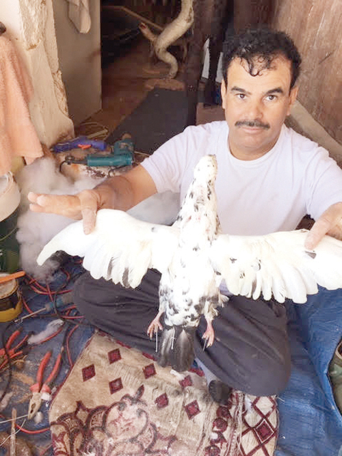 في زاوية من السوق الشعبي بمهرجان الجنادرية يجتمع الزوار عند يوسف الأحمد أبرز ممارس لمهنة تحنيط الحيوانات والطيور، يرصدون بهواتفهم المحمولة خطواته العملية في تحنيط الطيور. الأحمد أحد أبناء محافظة الأحساء يروي لـ«الجزيرة» تفاصيل تجربته، ويقول: حبي وشغفي لهذه المهنة دفعاني لتعلمها منذ الصغر، وما زلت أمارسها منذ ثلاثين عامًا، وأقضى جزءًا من وقتي في تحنيط الحيوانات والطيور البرية، خاصة الحمام، وذلك بعد تفريغ الأحشاء ووضع كميات كبيرة من الملح والقطن وبعض المواد التي تساعد في بقائه سنوات عدة. ويؤكد الأحمد أن هذه المهنة يجد فيها متعته في وقت فراغه، ولها مردود مالي لا بأس منه، إلى جانب مهم آخر، هو في تعريف الناس بمهنة التحنيط. لافتًا إلى أن عددًا من المدارس في المحافظة تستعين به عند إقامة المعارض التربوية لطلاب المدارس، ويتجاوب معهم بكل أريحية. ويشير الأحمد إلى أن العمر الافتراضي للحيوانات المحنطة قد يصل إلى خمسين عامًا إذا لم تتعرض للماء والرطوبة العالية.