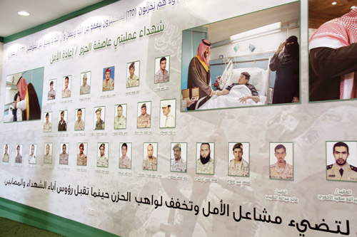 من جانب آخر شهد جناح الشهداء في الجنادرية على إقبال مثل شهداء المشاركين في حرب فلسطين وحرب العراق وحادثة الحرم والجولات وحرب الحد الجنوبي وحرب عاصفة الحزم.. وقد أثنى عدد من الزوار على وزارة الدفاع نشر أسماء هؤلاء الشهداء من الضباط والأفراد، وكل من قرأ أسماءهم دعا لهم بالمغفرة والرحمة.