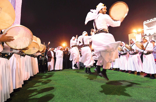 ترنمت أرض الجنادرية 33 على أنغام النص الرائق أو ما يعرف بـ»المجرور»، الذي اشتهرت به منطقة مكة المكرمة ومحافظة الطائف خاصة وميزها عن غيرها، حتى وصلت شهرته إلى خارج حدود الوطن واستعان بألحانه أشهر وأكبر الملحنين العرب. وحازت الألحان والعروض الحركية المتناغمة مع أنغام الطبول على استحسان زوار جناح منطقة مكة المكرمة، لافتًا انتباههم حضور جيلين لأداء هذا الفن الشعبي الجميل، جيل الآباء المتمسكين بموروثهم، والحريصين على نقله إلى أبنائهم العاشقين له، حتى أصبحوا يتفاخروا بأدائه أمام الجموع ليظهروه بصورة إبداعية جميلة. وأوضح قائد فرقة «ربابين المجرور» فهد بن حسين الغريبي، لوكالة الأنباء السعودية «واس» أنه جرى اختيار أعضاء هذه الفرقة من فئة الشباب بعناية فائقة، وجرى تدريبهم على أرقى المستويات لإيصال هذا الموروث لمسامعهم سليمًا خاليًا من الشوائب كما كان في الماضي مشيرًا إلى أنه وجد لدى هؤلاء الشباب حبًا وتقبلاً لموروث آبائهم وأجدادهم، وحرصًا ليقدموه ويخرجوه إلى المستمعين والمشاهدين بلمسات فيها روح الشباب والإبداع في الأداء والإتقان في التفاصيل ليخرجوه ويظهروه بصورة سليمة متقنة وإبداعية. وأشار الغريبي إلى أنه جرى ترشيح فرقة «ربابين المجرور» من إمارة منطقة مكة المكرمة للمشاركة في جناح مكة المكرمة بالجنادرية، مبينًا أن الفرقة تقدم أمام رواد وزوار الجنادرية لونين من ألوان الفنون الشعبية التي اشتهرت بها منطقة مكة المكرمة عامة والطائف خاصة وهما لونا «المجرور» و»التعشير». ويعد فن «المجرور» من الفنون الغنائية الجماعية الحركية ذات الإيقاعات والشعر الوجداني الرقيق، والرقصات التي تؤديها فرق مدربة ترتدي ملابس خاصة، تضيف إلى هذا الفن لمسات وملامح جمالية، إضافة إلى ما يتميز به «المجرور الطائفي» من إبداع في الكلمات والإيقاعات والحركات المصاحبة للانفعالات والتأثيرات الناشئة عن التجلي والاندماج مع الأداء والإيقاع.