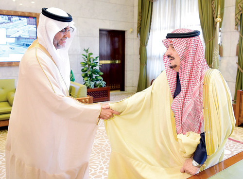 استقبل صاحب السمو الملكي الأمير فيصل بن بندر بن عبدالعزيز أمير منطقة الرياض بمكتبه بقصر الحكم أمس، معالي محافظ الهيئة السعودية للمواصفات والمقاييس والجودة الأمين العام لجائزة الملك عبدالعزيز للجودة الدكتور سعد بن عثمان القصبي. وأطلع الأمير فيصل بن بندر خلال الاستقبال على الاستعدادات التي تقوم بها الأمانة العامة لجائزة الملك عبدالعزيز للجودة، الذي سيشرفها سموه نيابة عن خادم الحرمين الشريفين مساء اليوم الاثنين.