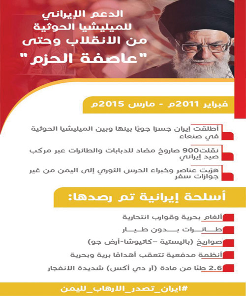 تزايد الدور الإيراني في مساعدة الحوثيين وإمدادهم بالسلاح بدرجة كبيرة منذ مارس 2015م عندما أعلن التحالف انطلاق عاصفة الحزم لدعم الشرعية في اليمن، بقيادة المملكة العربية السعودية.