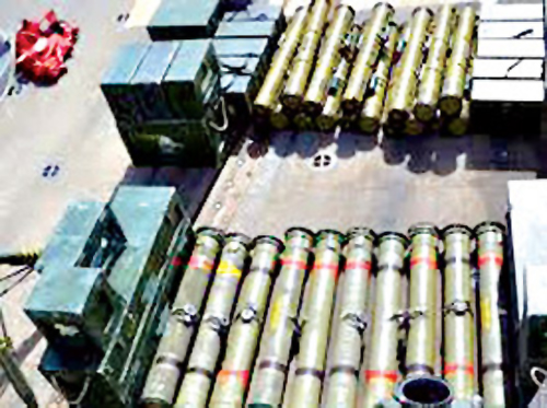 وقال التحالف في بيان صحفي إن السفينة تحمل على متنها 18 قذيفة «كونكورس» مضادة للدروع، و54 قذيفة «BGM – 17» مضادة للدبابات، و15 طقم بطارية للقذائف، و4 أنظمة توجيه للنيران، و5 بطاريات مناظير، و3 منصات إطلاق، وحامل منصة إطلاق، و3 بطاريات.