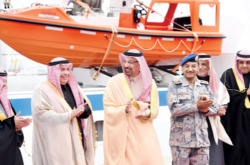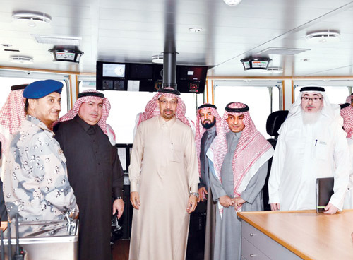 دشّن معالي وزير الطاقة والصناعة والثروة المعدنية، رئيس مجلس إدارة مدينة الملك عبدالعزيز للعلوم والتقنية المهندس خالد بن عبدالعزيز الفالح أمس، سفينة الأبحاث العلمية «ناجل» المخصصة لخدمة البحث العلمي بالخليج العربي والبحر الأحمر في علوم البحار ودراسة المخزون السمكي والتغيرات المناخية في البيئات البحرية المختلفة، وذلك في ميناء الجبيل التجاري.