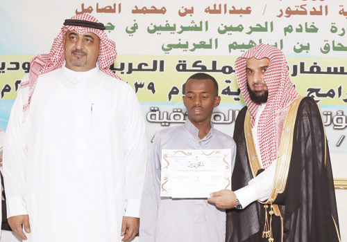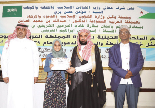 رعى وكيل وزارة الشؤون الإسلامية والدعوة والإرشاد للشؤون الإسلامية الدكتور عبدالله بن محمد الصامل مساء أمس حفل اختتام الأنشطة والبرامج الدعوية التي نظمتها الوزارة - ممثلة بالملحقية الدينية بسفارة خادم الحرمين الشريفين في جمهورية جيبوتي - وذلك بمقر الملحقية، بحضور الأمين العام للمجلس الأعلى الإسلامي الشيخ عكية قورح فاتح نيابة عن معالي وزير الشؤون الإسلامية والثقافة والأوقاف في جيبوتي، والقائم بالأعمال بسفارة خادم الحرمين الشريفين إسحاق بن إبراهيم العرين، ومدير مركز الملك عبدالعزيز حسن السالمي، وعدد من السفراء والمسؤولين ورؤساء الجمعيات والمراكز الإسلامية. واستُهل الحفل بتلاوة آيات من الذكر الحكيم. بعد ذلك ألقى الدكتور الصامل كلمة، أكد في مستهلها أن هذه البرامج والمناشط، سواء في هذه الملحقية الدينية في سفارة خادم الحرمين الشريفين في جيبوتي، أو في الملحقيات والمكاتب، أو المراكز الإسلامية التابعة للوزارة، تحظى بدعم وإشراف لا محدود من قِبل معالي الوزير الدكتور الشيخ عبداللطيف بن عبدالعزيز آل الشيخ. وقال: «إن الوزير آل الشيخ يشدد في جميع الاجتماعات على تحقيق رسالة المملكة السامية في خدمة العمل الإسلامي بمختلف مجالاته، ولاسيما ما يحقق قيم الوسطية والاعتدال، وينبذ جميع مظاهر التطرف والغلو والإرهاب».