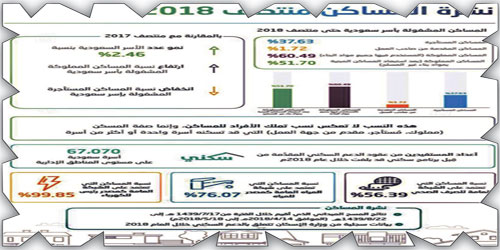أصدرت الهيئة العامة للإحصاء أمس, نشرة المساكن حتى منتصف 2018م، بحسب نتائج المسح الميداني الذي أقيم خلال الفترة من 17 / 7 إلى 22 / 8 / 1439هـ الموافق 14 / 4 إلى 18 / 5 / 2018م) إضافة إلى بيانات سجلية من وزارة الإسكان تتعلّق بالدعم السكني. وتهدف نشرة المساكن ...