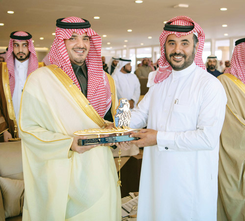 رعى صاحب السمو الملكي الأمير عبدالعزيز بن سعود بن نايف بن عبدالعزيز وزير الداخلية رئيس مجلس إدارة نادي الصقور السعودي أمس حفل ختام مهرجان الملك عبدالعزيز للصقور في نسخته الأولى، وذلك بمقر المهرجان في ملهم.