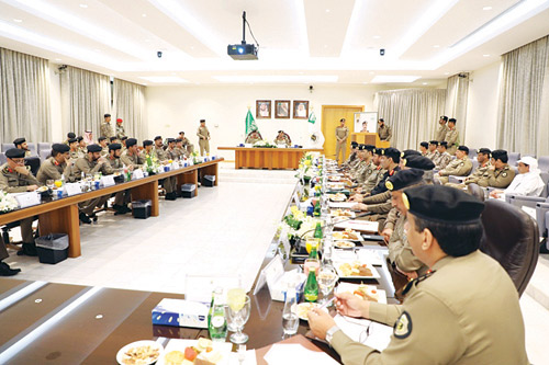 كما ناقش معاليه مع المجتمعين عدد من الجوانب الميدانية لأمن الطرق والمرور والدوريات وأقسام الشرط مقدِّماً شكره للجميع, ثم استعرض الملتقى عدداً من أوراق العمل منها توحيد الإجراءات الإدارية في كافة أفرع الأمن العام، ووضع مقاييس لمجمل الأداء والإنجاز، والاهتمام بتدريب العاملين، وتفعيل مفهوم التكامل الأمني بين الجهات الأمنية العاملة في الميدان، كما استعرض الاجتماع مناقشة الإستراتيجية التقنية للأمن العام خلال الخمس السنوات القادمة، وأهم البرامج والمشاريع التقنية للتحول الإلكتروني، والعمل على تفعيل منصة اعتماد لتحسين إجراءات العمل والجودة الإدارية.