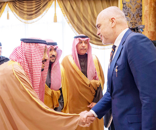 من جانب آخر عقد خادم الحرمين الشريفين الملك سلمان بن عبدالعزيز آل سعود -حفظه الله- في قصره في الرياض أمس، جلسة مباحثات رسمية مع دولة رئيس مجلس الوزراء بجمهورية ألبانيا آدي راما. وتم خلال المباحثات، استعراض آفاق التعاون الثنائي بين البلدين، والسبل الكفيلة بتطويرها وتعزيزها في شتى المجالات، إضافة إلى تطورات الأحداث في المنطقة.