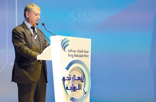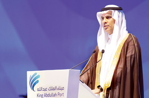 وثمن معالي وزير النقل المهندس نبيل محمد العامودي، في كلمته خلال الحفل زيارة سمو ولي العهد ورعايته الكريمة للافتتاح الرسمي لميناء الملك عبدالله كأول ميناء في المملكة والمنطقة يطوره ويديره ويشغله القطاع الخاص.