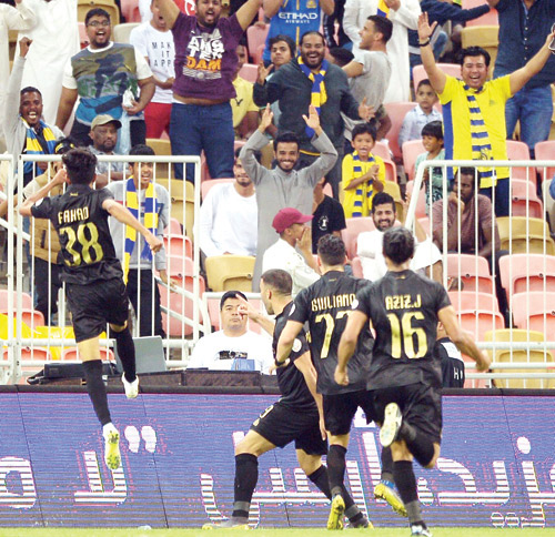 وفي جدة واصل النصر مطاردة الهلال عندما حقق فوزاً هاماً على الأهلي بهدفين لهدف في اللقاء الذي جمع بينهما مساء أمس على ملعب مدينة الملك عبدالله الرياضية بجدة.سجل للنصر: عبدالرزاق حمدالله (45 و61) سجل للأهلي: عمر السومة (59) المباراة: دخل الأهلي اللقاء بثلاثي دفاعي مكون من بايزا ومحمد آل فتيل وعبدالباسط هندي وأمامهم الخماسي سعيد المولد ومحمد عبدالشافي ونوح الموسى وحسين المقهوي وبايزا وستانسيو، وفي الهجوم الثنائي عمر السومة ودجانيني، فيما دخل مدرب النصر فيتوريا اللقاء بتشكيل مكون من برادلي وحمد آل منصور وبرونو اوفيني ومايكون وعبدالرحمن العبيد وعبدالعزيز الجبرين وبتريوس وجوليانو وامرابط وفهد الجميعة وحمدالله. جاءت بداية المباراة هادئة من الطرفين واتسمت بالحذر الشديد خشية تلقي هدف مبكر يخلط الأوراق. ولاحت فرصة خطرة للأهلي في الدقائق العشر الأولى أمام الروماني ستانسيو الذي وجد نفسه أمام المرمى بعد كرة عائدة من الدفاعات النصراوية إلا أن تسديدته مرت بجانب الأيمن. بعدها عاد الهدوء وانحصر اللعب في وسط الميدان مع محاولات خجولة من الطرفين وجدت دفاعات صلبة أبعدت كل الهجمات الخطرة. ومع مرور الوقت بدأ لاعبو النصر في أخذ المبادرة والوصول إلى مرمى الأهلي مع محاولات أهلاوية متفاوتة من وقت إلى آخر، ولكن الخطورة كانت غائبة تماماً عن أي مرمى. وقبل ثوان قليلة من نهاية الشوط ارتقى برونو لعرضية نصراوية تصدى لها العويس أكملها حمدالله داخل الشباك مسجلاً الهدف النصراوي الأول (45) ودخل الأهلي الشوط الثاني بضغط هجومي رهيب بحثاً عن التعديل وطالب لاعبوه بركلتي جزاء لم يحتسبها الحكم بعد الرجوع إلى تقنية الفار. قبل أن يحتسب حكم المباراة ركلة جزاء للأهلي بعد إعاقة حسين المقهوي داخل منطقة الجزاء نفذها السومة بنجاح داخل الشباك (59) لم تستمر فرحة الأهلاويين بالتعادل سوى دقيقتين، عندما ارتقى حمدالله لعرضية مرابط وأوضعها داخل الشباك مسجلاً الهدف النصراوي الثاني (62). بعدها تدخل مدرب الأهلي فوساتي وأجرى تبديلين في وسط الملعب بدخول عبدالفتاح عسيري وتيسير الجاسم بدلاً من ستانسيو وحسين المقهوي. نجح بعدها لاعبو النصر في تهدئة اللعب وإبعاد لاعبي الأهلي تماماً عن مناطق الخطورة. فيما تبديلات مدرب الأهلي فوساتي تباعداً تاماً في الخطوط، حيث غابت المساندة تماماً عن الثلاثي عبدالفتاح عسيري ودجانيني والسومة. لينتهي القاء بفوز النصر بهدفين لهدف.