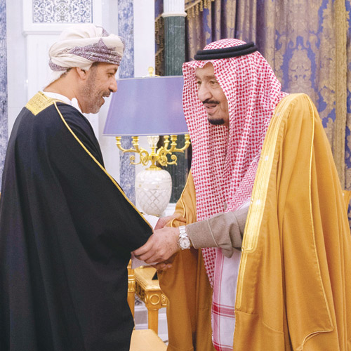 استقبل خادم الحرمين الشريفين الملك سلمان بن عبدالعزيز آل سعود -حفظه الله- في مكتبه بقصر اليمامة في الرياض أمس معالي وزير الداخلية بسلطنة عُمان حمود بن فيصل البوسعيدي.