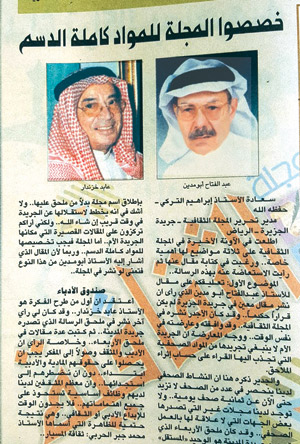 ولأن العدد (الأول)، من كل الأشياء له قيمته التي لا تصدأ بمرور الزمن، بل يزداد قيمة وأهمية كلما تقادم به العهد، ولكونه أول الغيث، وأول العطاء، وأول الميل، وأول ما لفت الأنظار بنجاح إلى إشراقة هذه الواحة الثقافية الصحفية في المملكة، تلك الإشراقة الثقافية، التي لا تزال تؤكد عمق الرؤية، ودقة التخطيط، وشمولية الهدف، ويقينيات الرسالة الصحفية الثقافية، بوصفها (النخبوي)، وبطبيعتها (الشعبوية) في التلقي، لمختلف الأطياف الثقافية، لنعود بذاكرة القارئ اليوم، إلى ذلك العام، وتحديدًا من ذلك اليوم -الاثنين- وعلى وجه التحديد مع إشراقة ذلك الفجر الثقافي للمجلة، الذي يطالعنا فيها كلمة افتتاحية للزميل رئيس التحرير خالد المالك بعنوان: «المجلة الثقافية: إصدارنا الرابع»، الذي جاء منه: «اليوم هو الاثنين، تذكروا أنه منتصف هذا الأسبوع، وكل أسبوع.. وقد اخترناه من بين كل الأيام موعدًا لكم معنا في سياحة صحفية تليق بكم.. لنقرئكم فيه مجلة أسبوعية جديدة، ولكنها هذه المرة عن الثقافة والمثقفين.. فنحن نرى في قراء (الجزيرة) أنهم جميعًا ودون استثناء يمثلون رقمًا مهمًا في مجموعة الطبقة المثقفة، والمملكة بكل ألوان الطيف الثقافي.