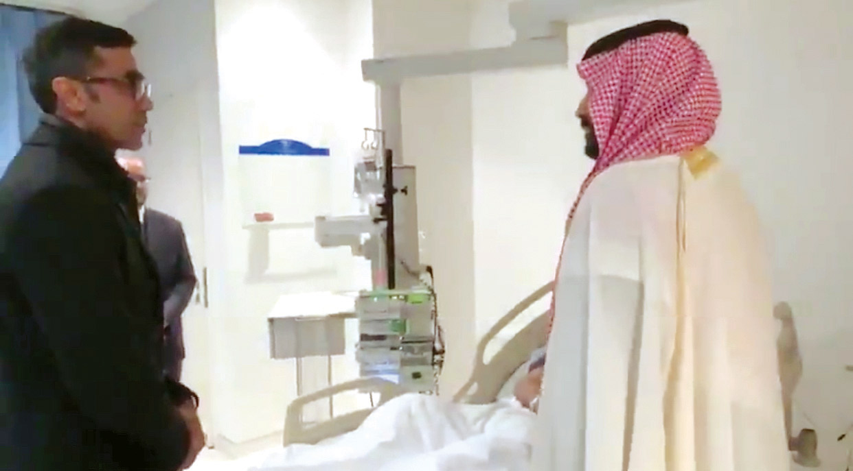 اطمأن صاحب السمو الملكي الأمير محمد بن سلمان ولي العهد نائب رئيس مجلس الوزراء وزير الدفاع -حفظه الله- على صحة رئيس تحرير صحيفة الرياض الزميل فهد العبد الكريم - ضمن الوفد الإعلامي المرافق لجولة ولي العهد - خلال زيارة قام بها سموه للزميل في مستشفى بكين المتحد للأسرة، بالعاصمة الصينية بكين، بعد الوعكة الصحية التي ألمت به.