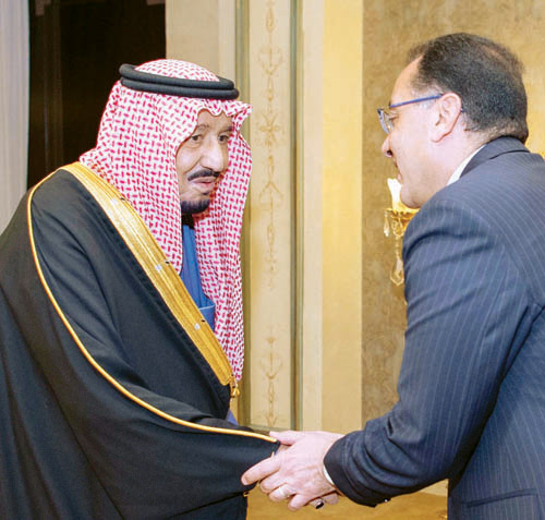 استقبل خادم الحرمين الشريفين الملك سلمان بن عبدالعزيز آل سعود -حفظه الله- مساء أمس في مقر إقامته بشرم الشيخ، دولة رئيس الوزراء بجمهورية مصر العربية الدكتور مصطفى مدبولي، الذي رحب بخادم الحرمين الشريفين في بلده الثاني مصر. وجرى خلال اللقاء، استعراض مجالات التعاون بين البلدين الشقيقين، وفرص تعزيزها وتطويرها.
