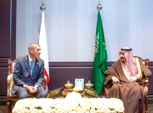 كما التقى خادم الحرمين الشريفين الملك سلمان بن عبدالعزيز آل سعود -حفظه الله - في مقر انعقاد القمة العربية - الأوروبية أمس، دولة رئيس وزراء جمهورية التشيك أندريه بابيش. وتم خلال اللقاء، استعراض علاقات التعاون بين البلدين، وعدد من الموضوعات المدرجة ضمن جدول أعمال القمة. حضر اللقاء، معالي وزير الدولة عضو مجلس الوزراء الدكتور مساعد بن محمد العيبان، ومعالي وزير التجارة والاستثمار الدكتور ماجد بن عبدالله القصبي، ومعالي وزير الدولة للشؤون الخارجية الأستاذ عادل بن أحمد الجبير، ومعالي مساعد السكرتير الخاص لخادم الحرمين الشريفين الأستاذ تميم بن عبدالعزيز السالم. كما حضر من الجانب التشيكي، معالي وزيرة الدولة للشؤون الأوروبية ميلينا هردنكوفا، والسفير لدى مصر والسودان وإريتريا جان فوليك، ومدير منطقة الشرق الأوسط وشمال إفريقيا بوزارة الخارجية بيتر هلاديك.